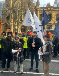 ਡਰਾਈਵਰਾਂ ਨੇ ਵਿਦੇਸ਼ੀ ਮਾਲਕੀ ਵਾਲੀਆਂ ਬਹੁ-ਰਾਸ਼ਟਰੀ ਕੰਪਨੀਆਂ ਅਤੇ ਵਿਕਟੋਰੀਆ ਸਰਕਾਰ ਨੂੰ ਇੱਕ ਸ਼ਕਤੀਸ਼ਾਲੀ ਸੁਨੇਹਾ ਭੇਜਣ ਲਈ ਸੰਸਦ ਵੱਲ ਮਾਰਚ ਕੀਤਾ। ਡਰਾਈਵਰਾਂ ਨੇ ਇਹ ਸਪੱਸ਼ਟ ਕਰ ਦਿੱਤਾ ਹੈ ਕਿ ਉਹ ਆਪਣੇ ਬਕਾਏ ਤੋਂ ਘੱਟ ‘ਤੇ ਅਤੇ ਆਪਣੀਆਂ ਵਾਜਬ ਮੰਗਾਂ ਮਨਵਾਏ ਬਗੈਰ ਨਹੀਂ ਮੰਨਣਗੇ। ਯੂਨੀਅਨ ਡੈਲੀਗੇਟ ਰਵਨੀਤ ਸਿੰਘ ਸੋਹੀ ਨੇ ਵੀ ਬੱਸ ਸੇਵਾਵਾਂ ਵਿੱਚ ਵਿਘਨ ਲਈ ਪਬਲਿਕ ਤੋਂ ਮੁਆਫੀ ਮੰਗਦੇ ਹੋਏ ਪਬਲਿਕ ਦੇ ਸਹਿਯੋਗ ਲਈ ਅਤੇ ਯੈਨ ਯੀਨ ਤੋਂ ਮਾਣਯੋਗ MP ਲੌਰੇਨ ਕੈਥੇਜ਼ੀ ਦਾ ਮਾਰਚ ਵਿੱਚ ਸ਼ਾਮਲ ਹੋਣ ਲਈ ਧੰਨਵਾਦ ਕੀਤਾ।
