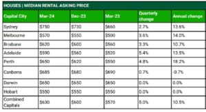 ਹੋਬਾਰਟ ਨੂੰ ਛੱਡ ਕੇ ਹਰ ਵੱਡੇ ਸ਼ਹਿਰ ਵਿਚ ਖਾਲੀ ਮਕਾਨਾਂ ਦੀ ਦਰ ਵਿਚ ਵੀ ਗਿਰਾਵਟ ਆਈ ਹੈ, ਸਿਡਨੀ, ਮੈਲਬੌਰਨ ਅਤੇ ਪਰਥ ’ਚ ਤਾਂ ਇਹ ਰਿਕਾਰਡ ਹੇਠਲੇ ਪੱਧਰ ‘ਤੇ ਹਨ। ਦੇਸ਼ ਦੇ ਸ਼ਹਿਰੀ ਕੇਂਦਰਾਂ ‘ਚ ਮਕਾਨਾਂ ਦਾ ਕਿਰਾਇਆ ਤਿਮਾਹੀ ‘ਚ 5 ਫੀਸਦੀ ਵਧਿਆ ਹੈ, ਜਦੋਂ ਕਿ ਯੂਨਿਟਾਂ ਵੀ 3.3 ਫੀਸਦੀ ਵਧ ਕੇ 620 ਡਾਲਰ ਦੇ ਨਵੇਂ ਰਿਕਾਰਡ ਔਸਤ ਮੁੱਲ ‘ਤੇ ਪਹੁੰਚ ਗਈਆਂ ਹਨ। ਹਾਲਾਂਕਿ ਡੋਮੇਨ ਮੁਖੀ ਨਿਕੋਲਾ ਪਾਵੇਲ ਨੇ ਭਰੋਸਾ ਪ੍ਰਗਟਾਇਆ ਕਿ ਮਕਾਨਾਂ ਦੇ ਕਿਰਾਏ 2024 ਸਿਖਰ ਨੂੰ ਛੂਹ ਕੇ ਛੇਤੀ ਹੀ ਵਾਪਸ ਪਰਤਣਗੇ, ਕਿਉਂਕਿ ਆਬਾਦੀ ਦਾ ਵਾਧਾ ਹੌਲੀ ਹੋ ਜਾਵੇਗਾ।