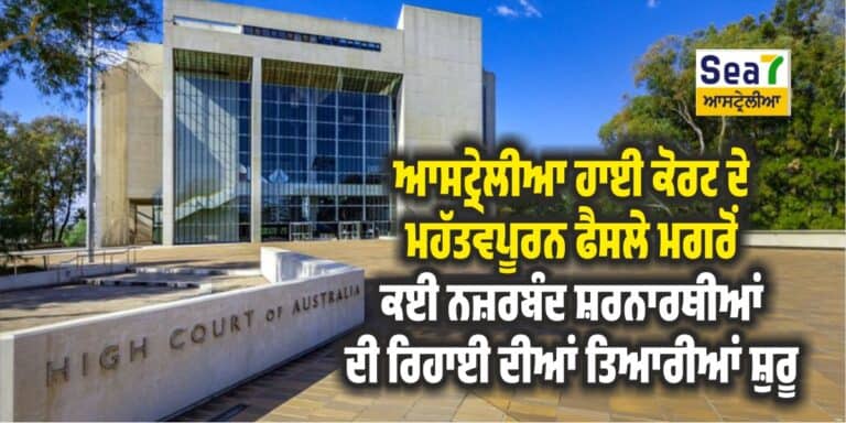 ਮੈਲਬਰਨ: ਆਸਟ੍ਰੇਲੀਆ ਹਾਈ ਕੋਰਟ ਦੇ ਇੱਕ ਮਹੱਤਵਪੂਰਨ ਫੈਸਲੇ ਤੋਂ ਬਾਅਦ ਬਹੁਤ ਸਾਰੇ ਸ਼ਰਨਾਰਥੀਆਂ ਨੂੰ ਇਮੀਗ੍ਰੇਸ਼ਨ ਨਜ਼ਰਬੰਦੀ (Immigration Detention) ਤੋਂ ਰਿਹਾਅ ਕਰਨ ਲਈ ਤਿਆਰੀ ਚਲ ਰਹੀ ਹੈ। ਪਿਛਲੇ ਦਿਨੀਂ 20 ਸਾਲ