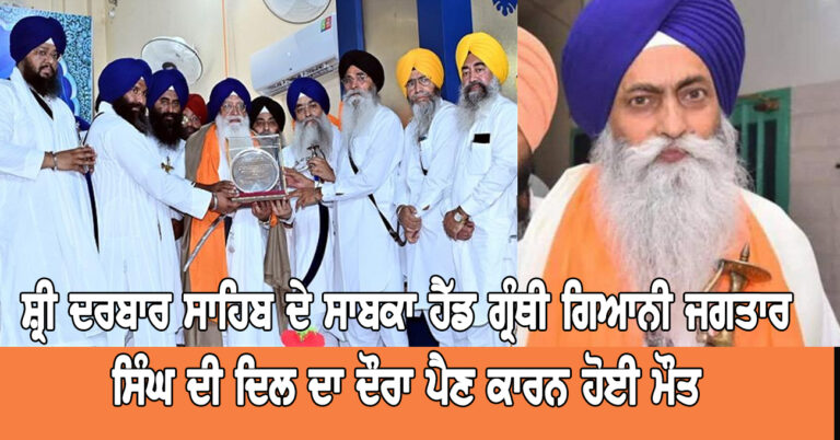 ਸ਼੍ਰੀ ਦਰਬਾਰ ਸਾਹਿਬ ਦੇ ਸਾਬਕਾ ਹੈੱਡ ਗ੍ਰੰਥੀ ਗਿਆਨੀ ਜਗਤਾਰਸਿੰਘ ਦੀ ਦਿਲ ਦਾ ਦੌਰਾ ਪੈਣ ਕਾਰਨ ਹੋਈ ਮੌਤ